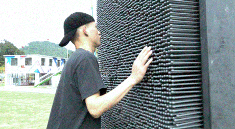 奇妙搞怪的人体打印墙上